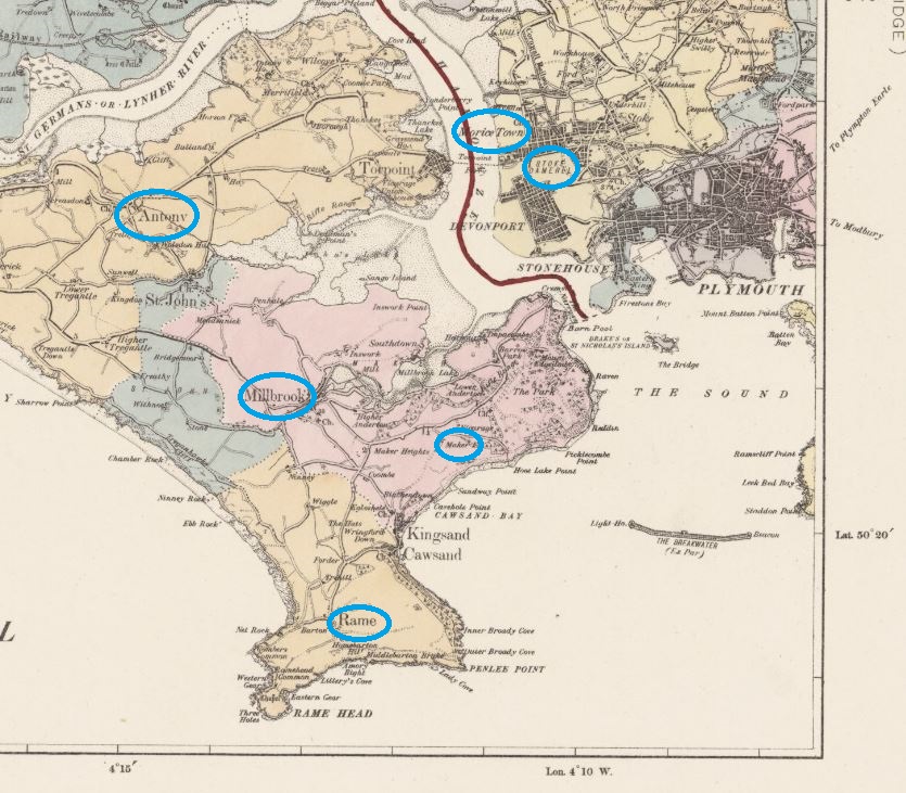 Joseph is linked to my Ellis ancestors through his sister Elizabeth Small Burt (1812-1894) and her husband George Brown (1811-1897), who are my three times great grandparents. Their daughter Elizabeth Small Brown (1844-1916) married my two times great grandfather Francis Ellis (1839-1925) in Portsea, Hampshire, where he was serving in the Coastguard service. The following OS map has been annotated with a number of locations where George and Elizabeth lived with their family in the 19th century.
