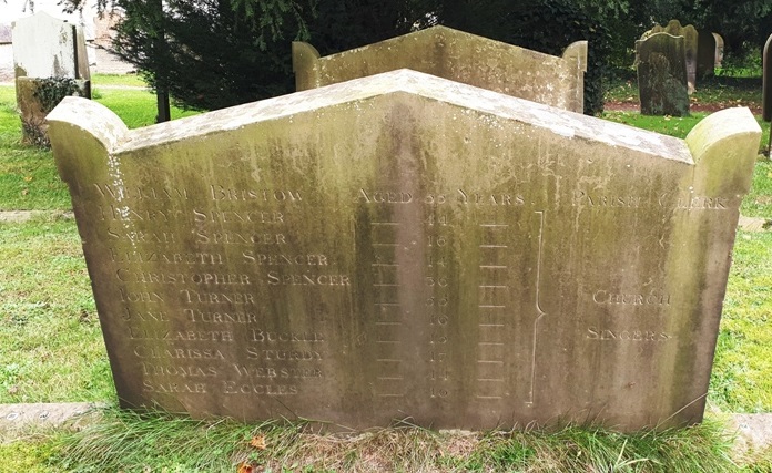 - Five men: William Bristow (55, parish clerk), Christopher Spencer (36), Henry Spencer (44), John Turner (55) and Thomas Webster (44)