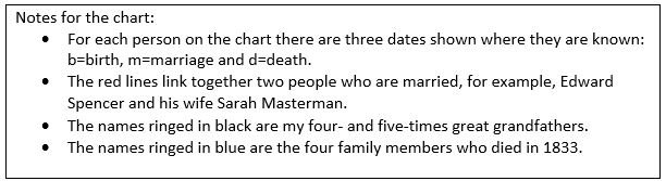 - Henry Spencer (1790-1833), my fifth great uncle and two of his daughters Sarah (1817-1833) and Elizabeth (1819-1833), my first cousins five times removed.